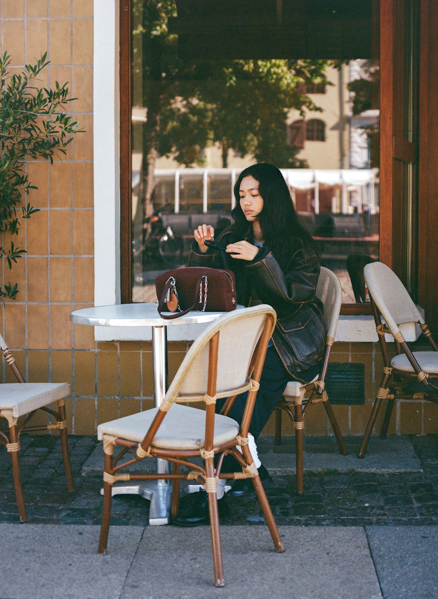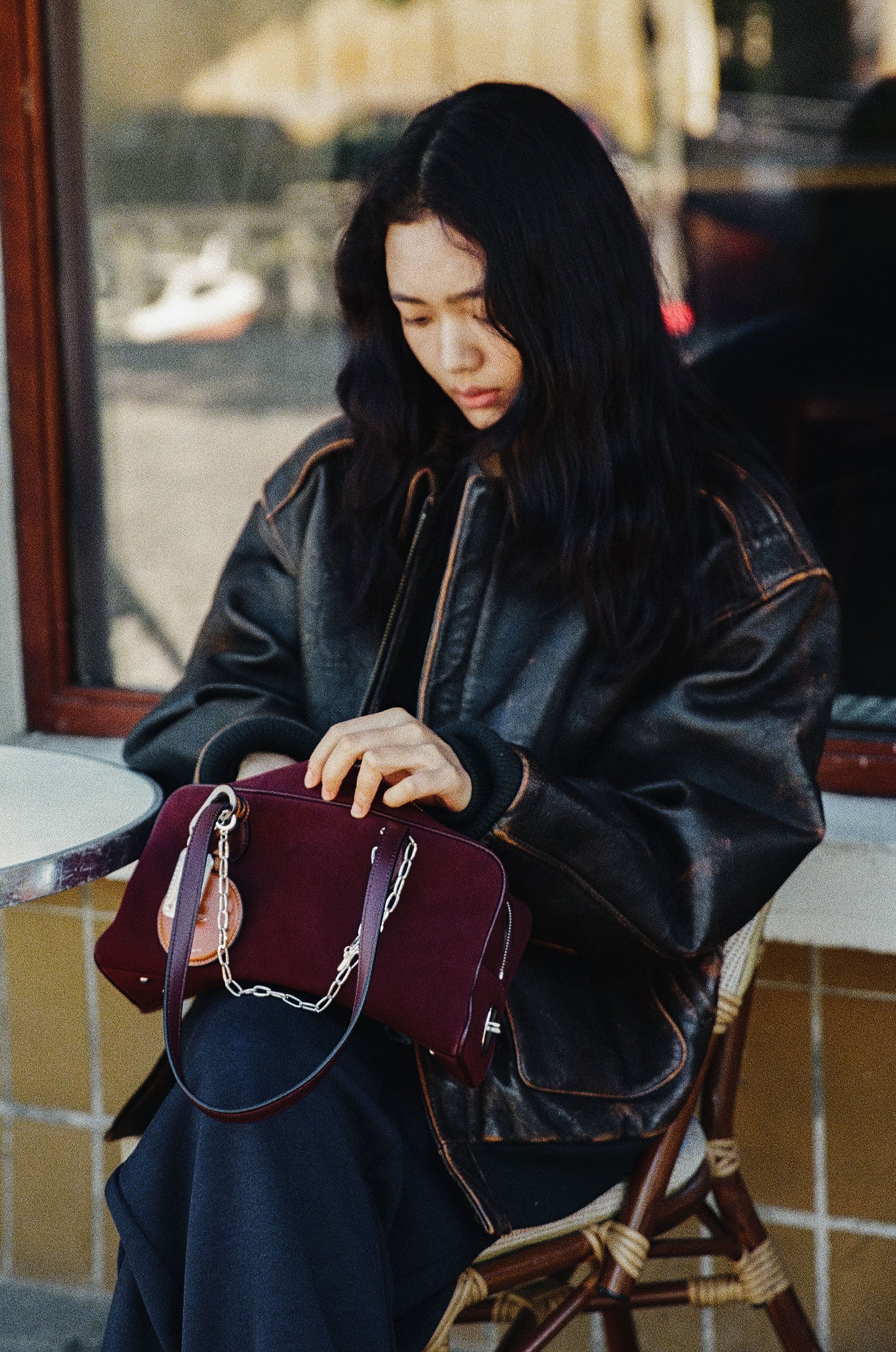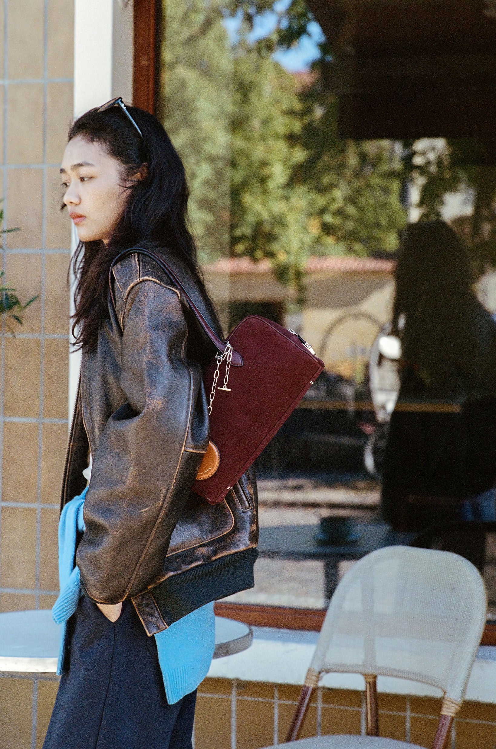SAC LOQUET SMALL is a compact version of the original long-strap design. Crafted from goat suede, it displays subtle color variations that shift with the light. Its soft texture lets the bag naturally contour to the shoulder for a comfortable fit. A cowhide strap adds durability, while leather-trimmed edges preserve the structured silhouette. Inside, a linen-cotton lining and wide-opening zipper provide easy access and generous storage, all in a lightweight 350g design.