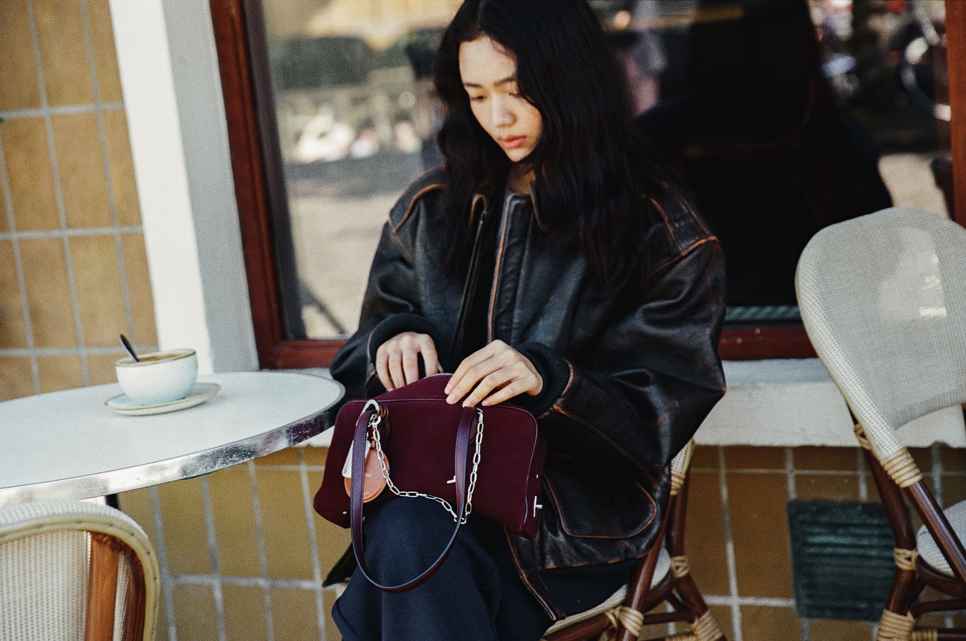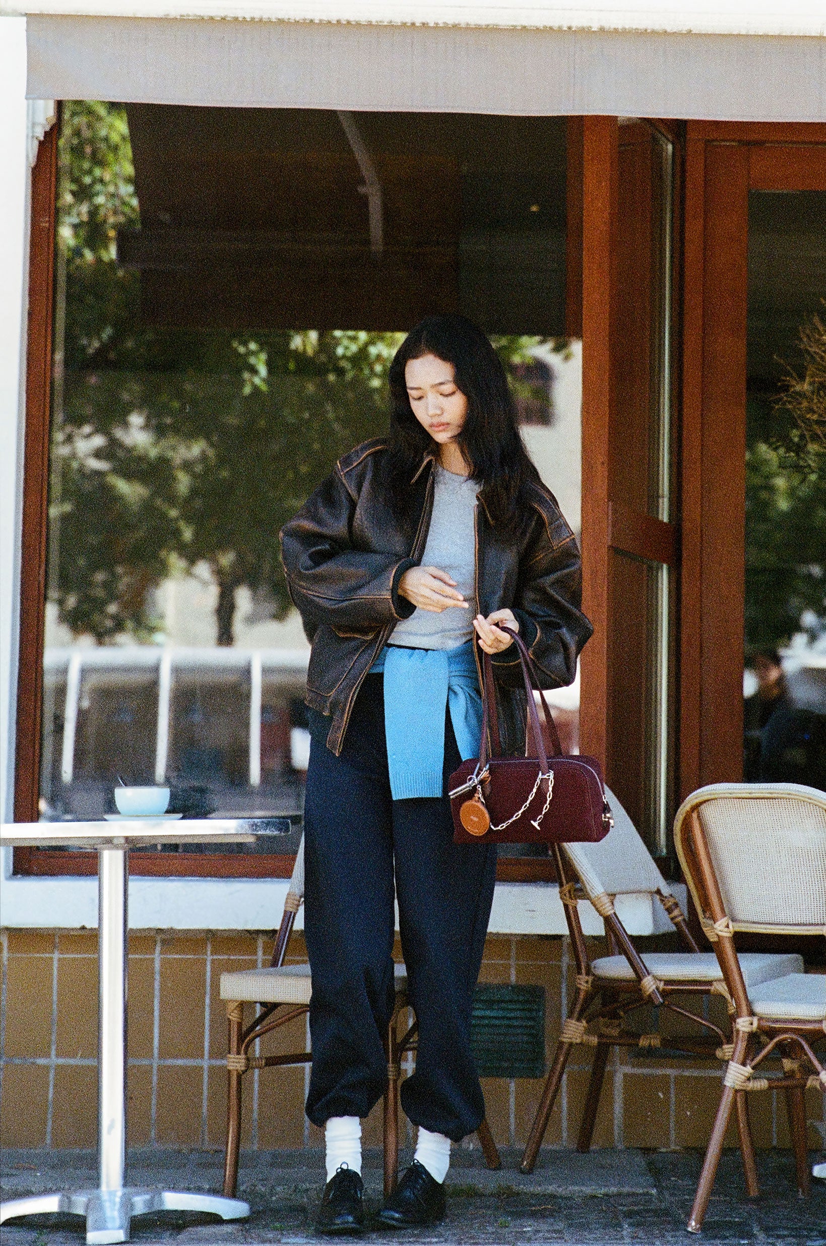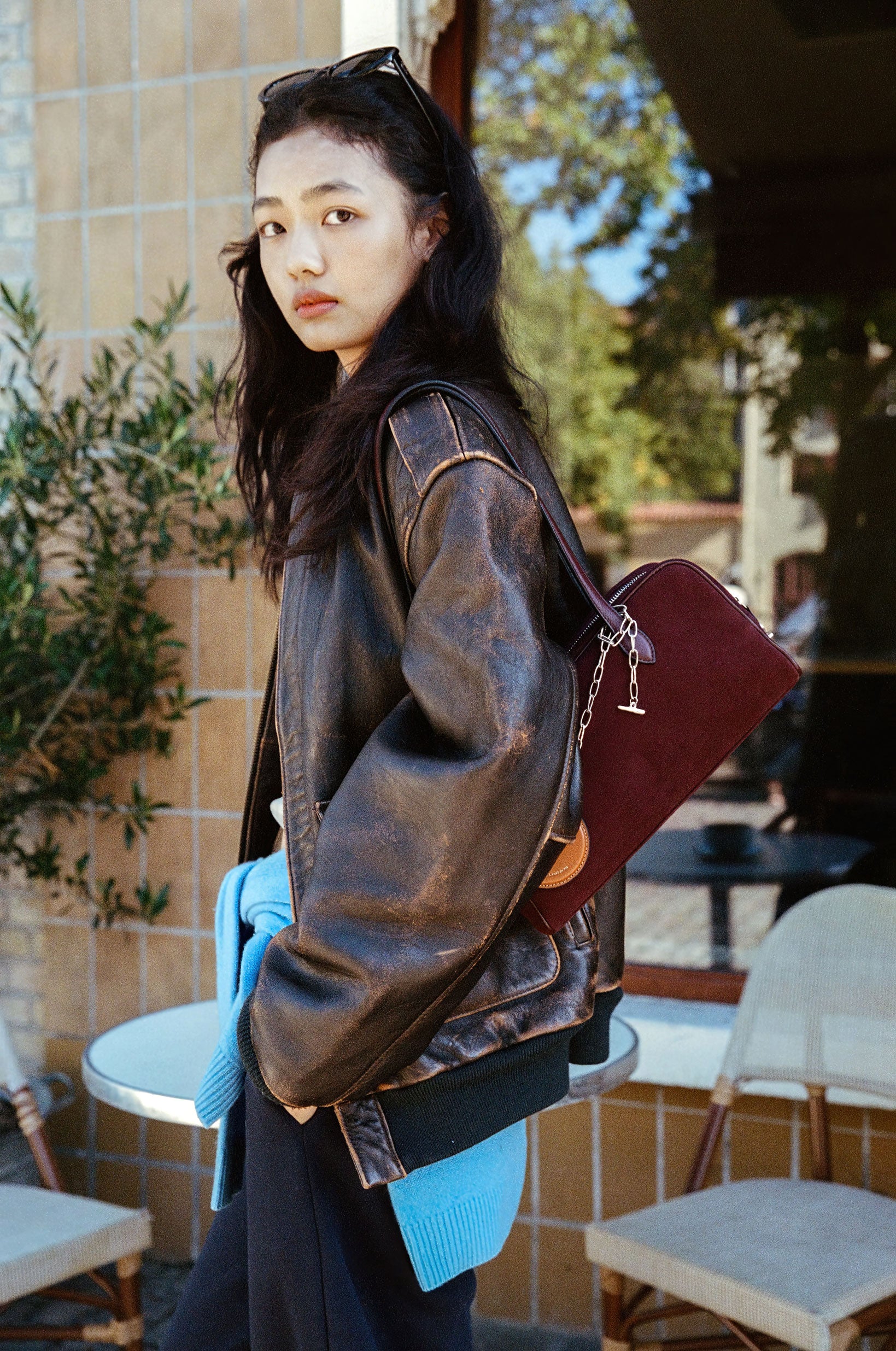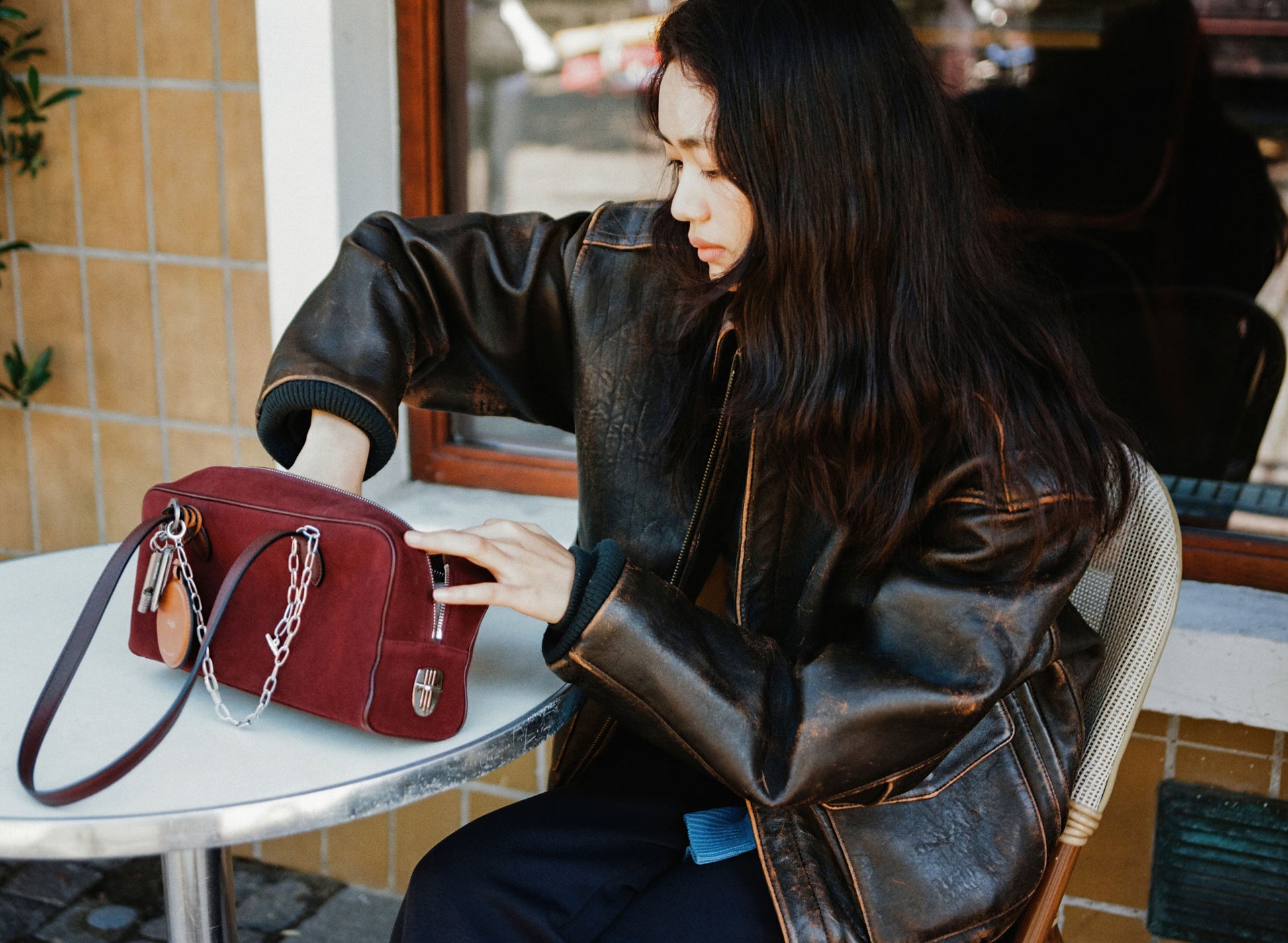 SAC LOQUET SMALL is a compact version of the original long-strap design. Crafted from goat suede, it displays subtle color variations that shift with the light. Its soft texture lets the bag naturally contour to the shoulder for a comfortable fit. A cowhide strap adds durability, while leather-trimmed edges preserve the structured silhouette. Inside, a linen-cotton lining and wide-opening zipper provide easy access and generous storage, all in a lightweight 350g design.