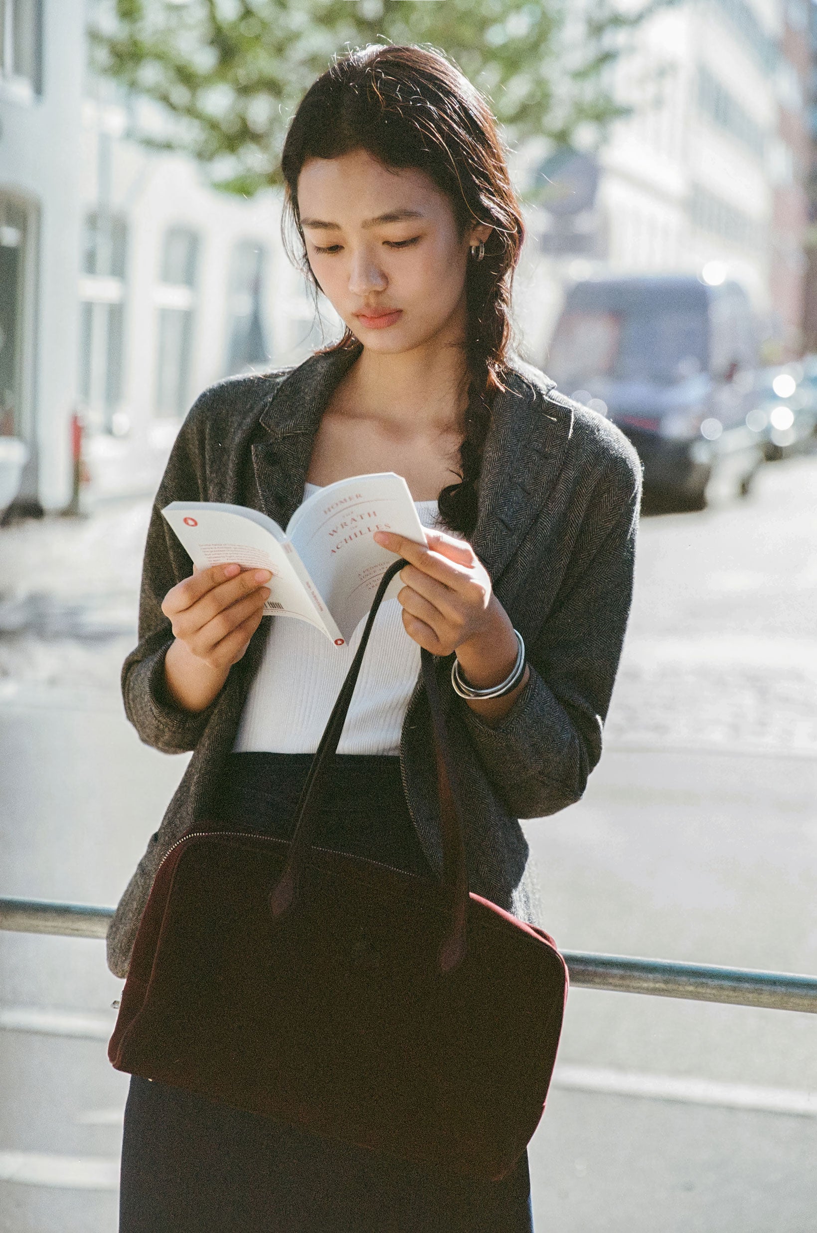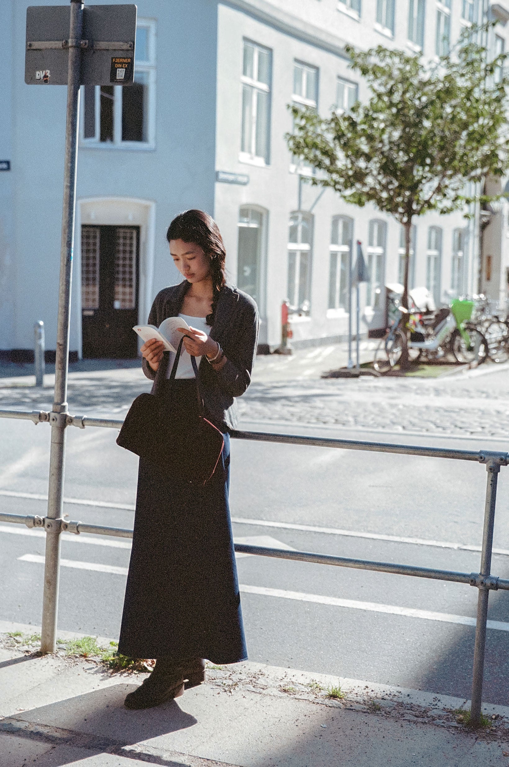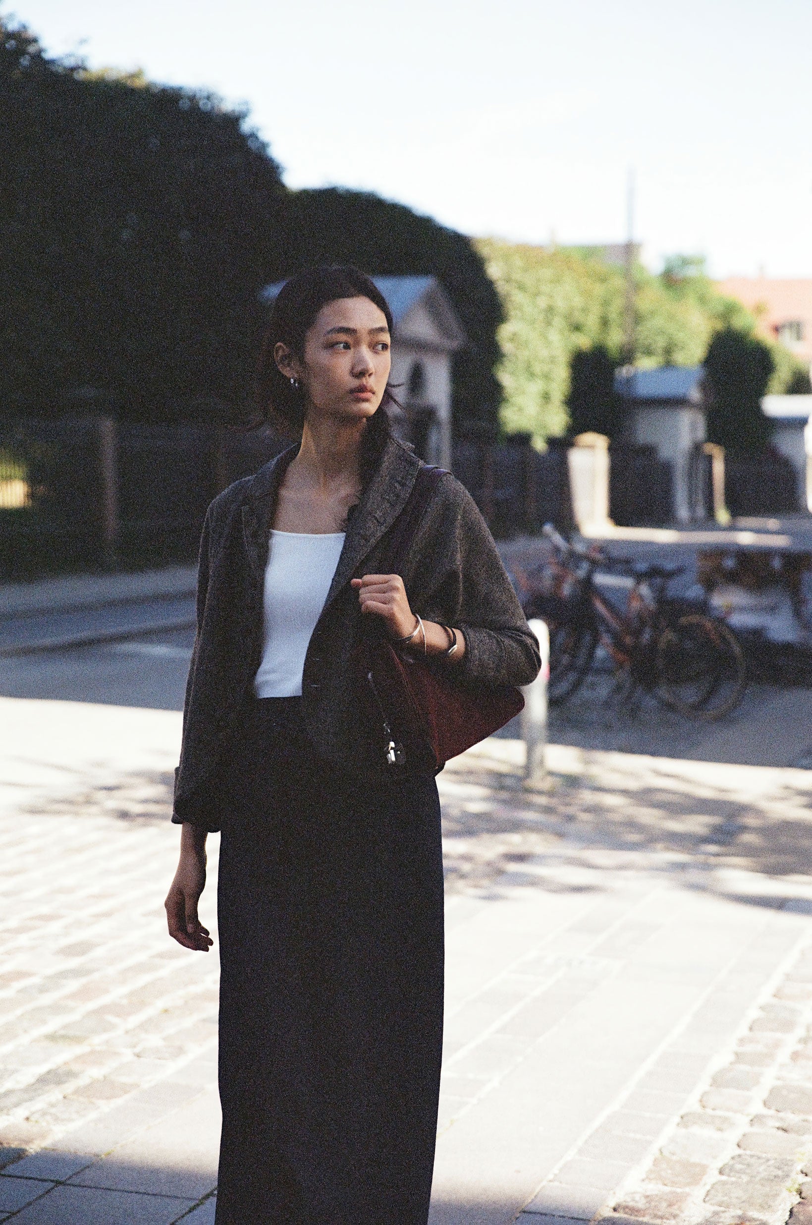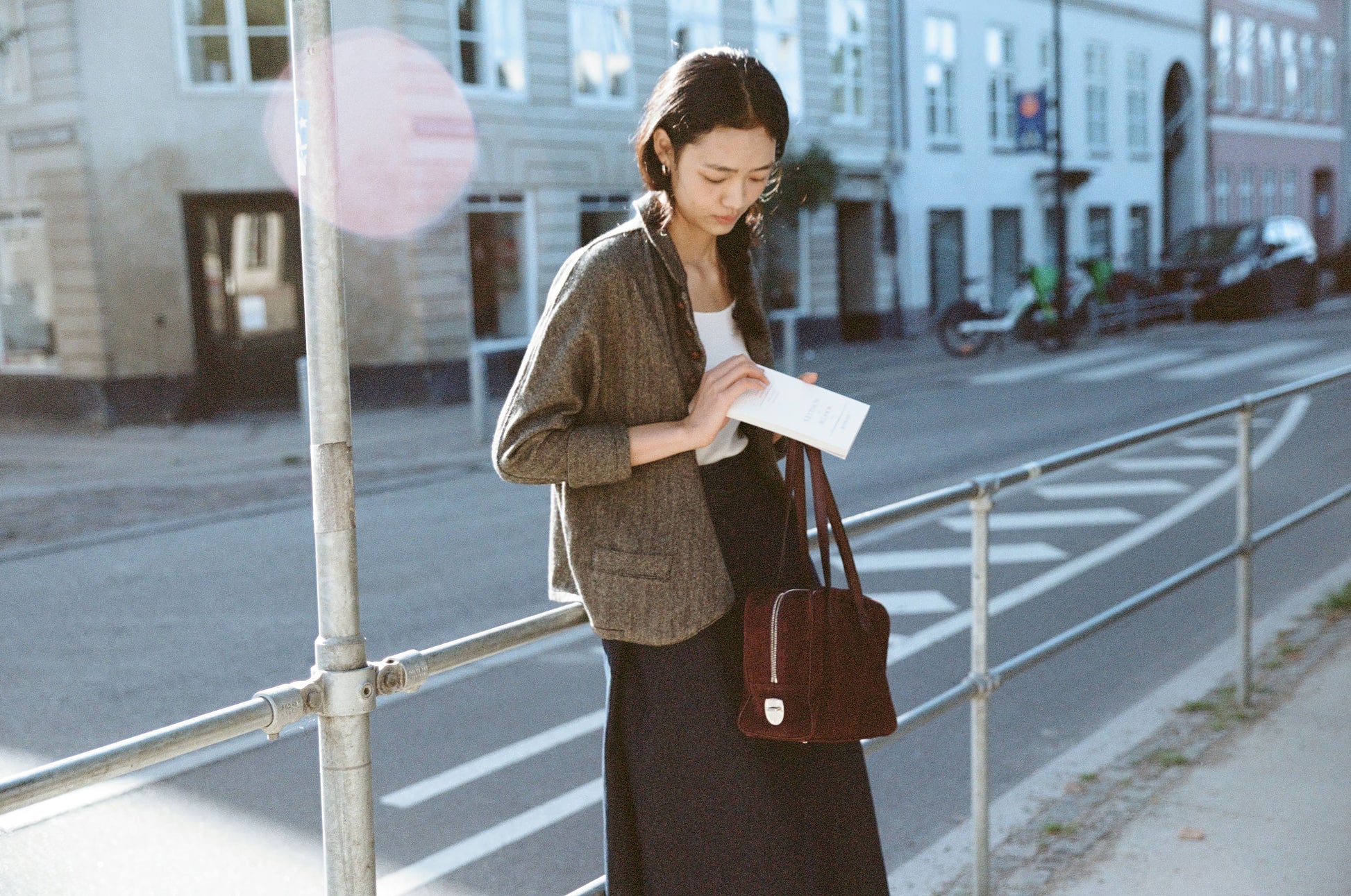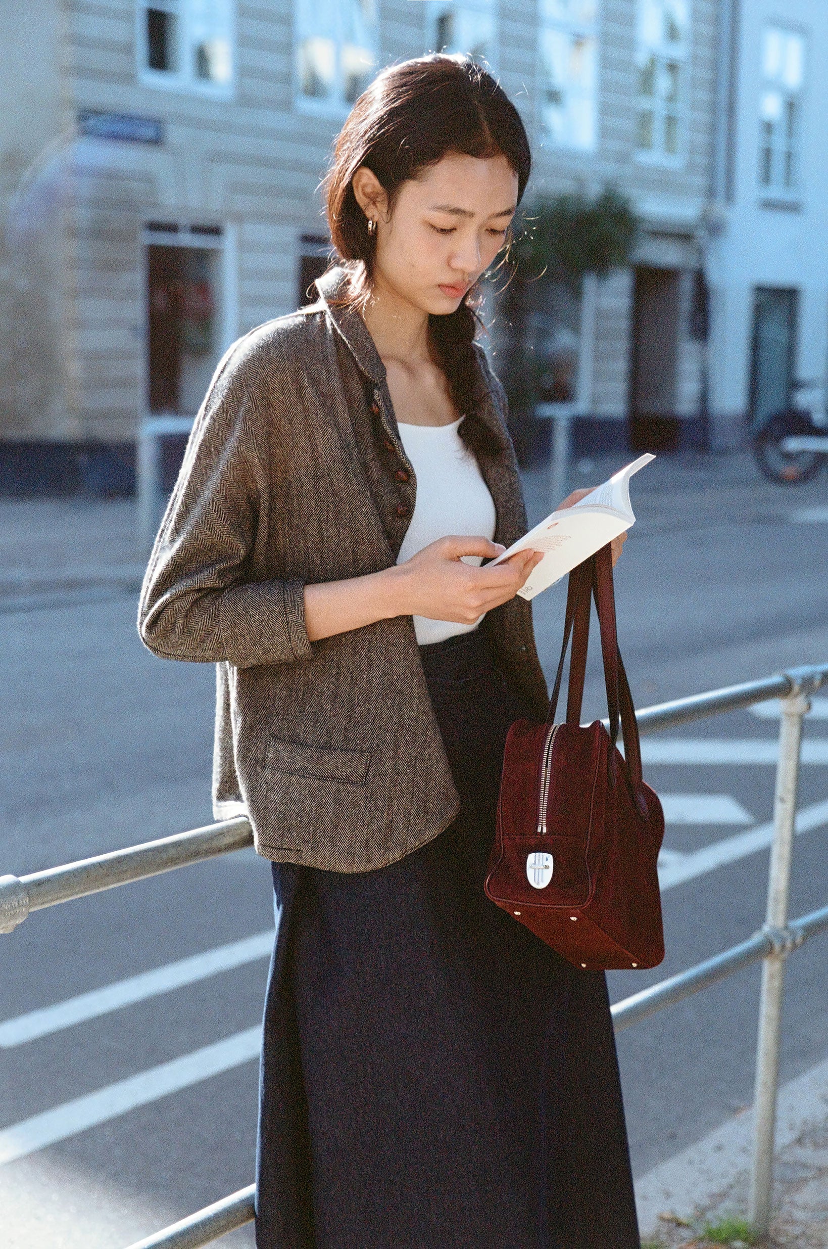 This is the long strap version of the original LOQUET bag and can also be worn over the shoulder. The goat suede stands out with its subtle color that changes depending on the light, and its soft finish allows for a natural shape and comfortable fit when used as a shoulder bag. The strap section is crafted from cowhide to enhance durability, and the leather trim along the edges stabilizes the bag's shape. The lining, made from thick linen-cotton, coupled with the wide-opening zipper, provides ample storage capacity while maintaining a lightweight.