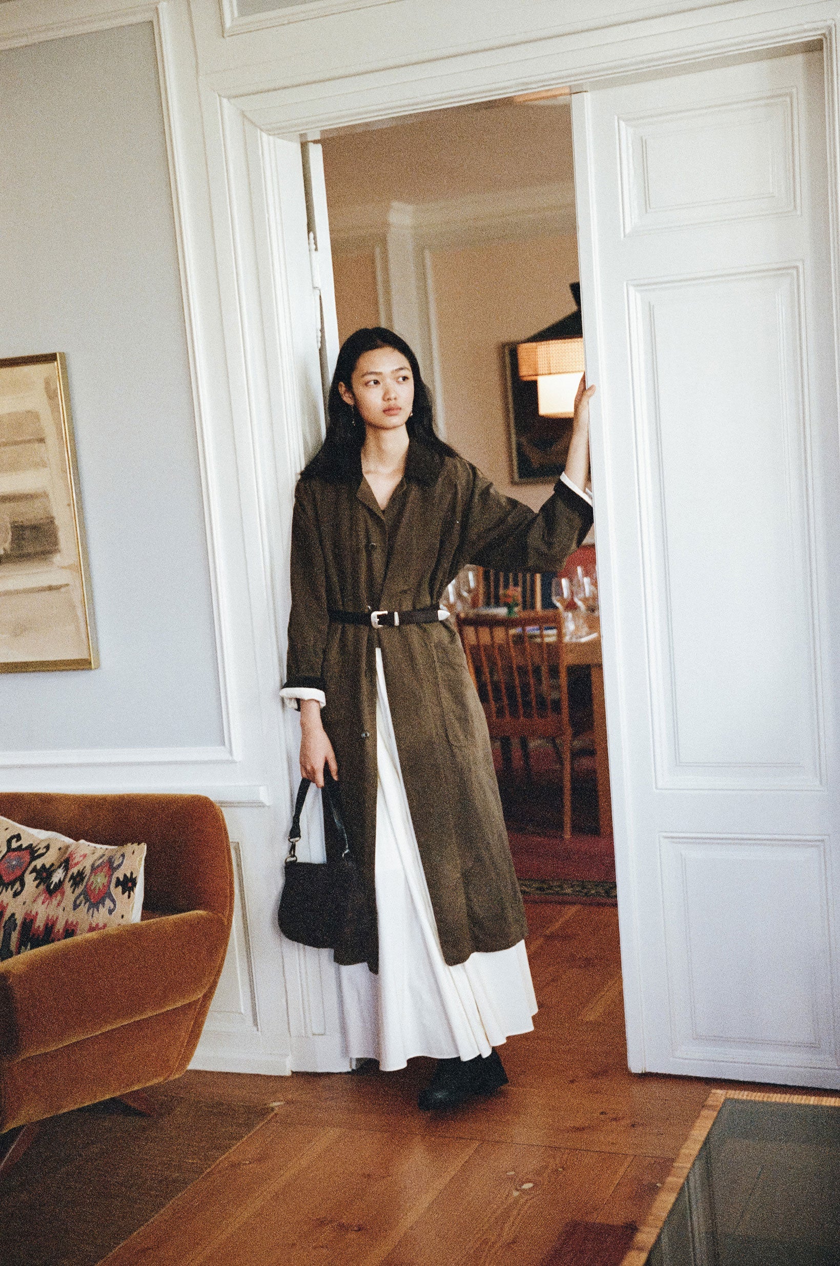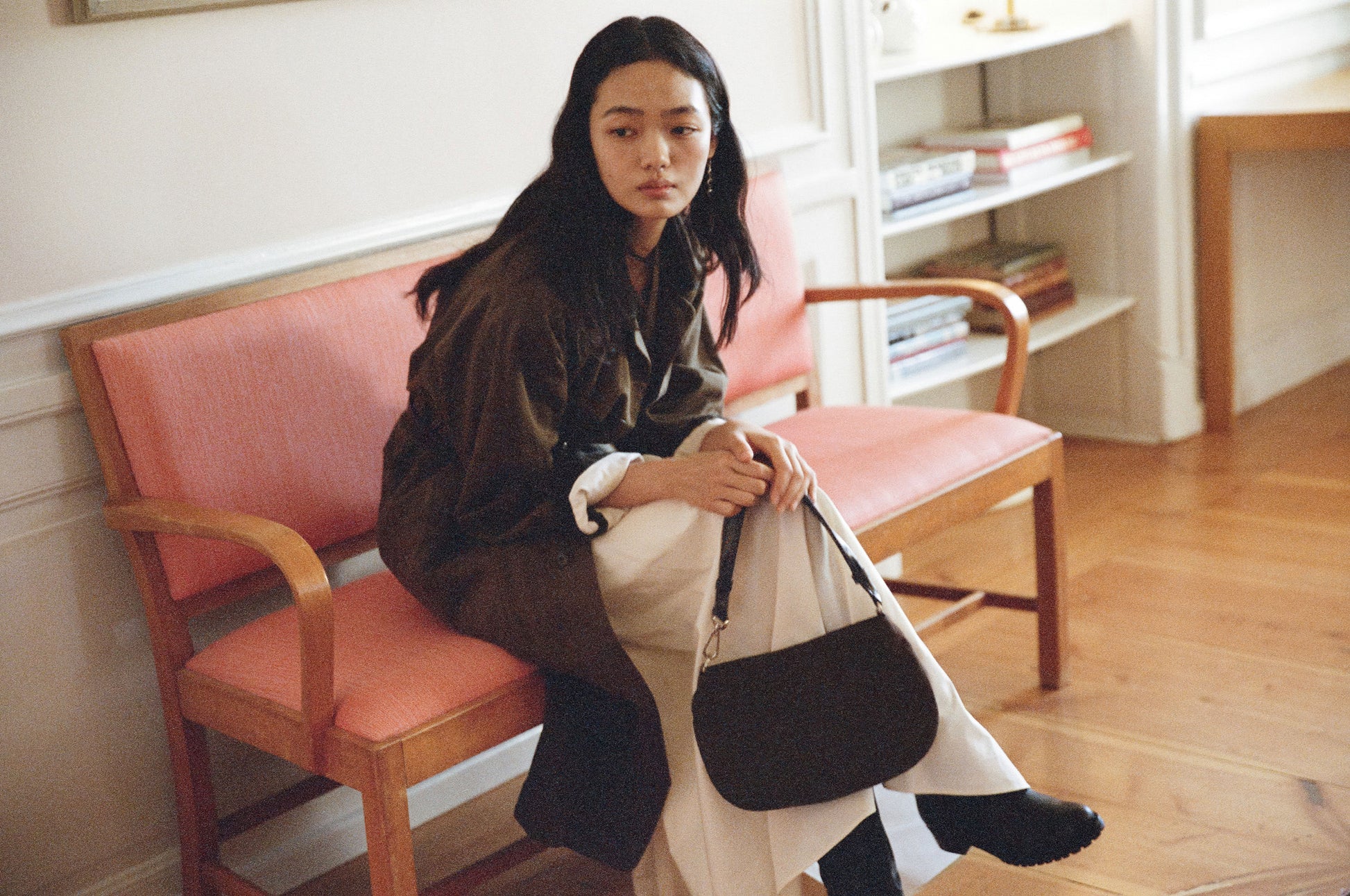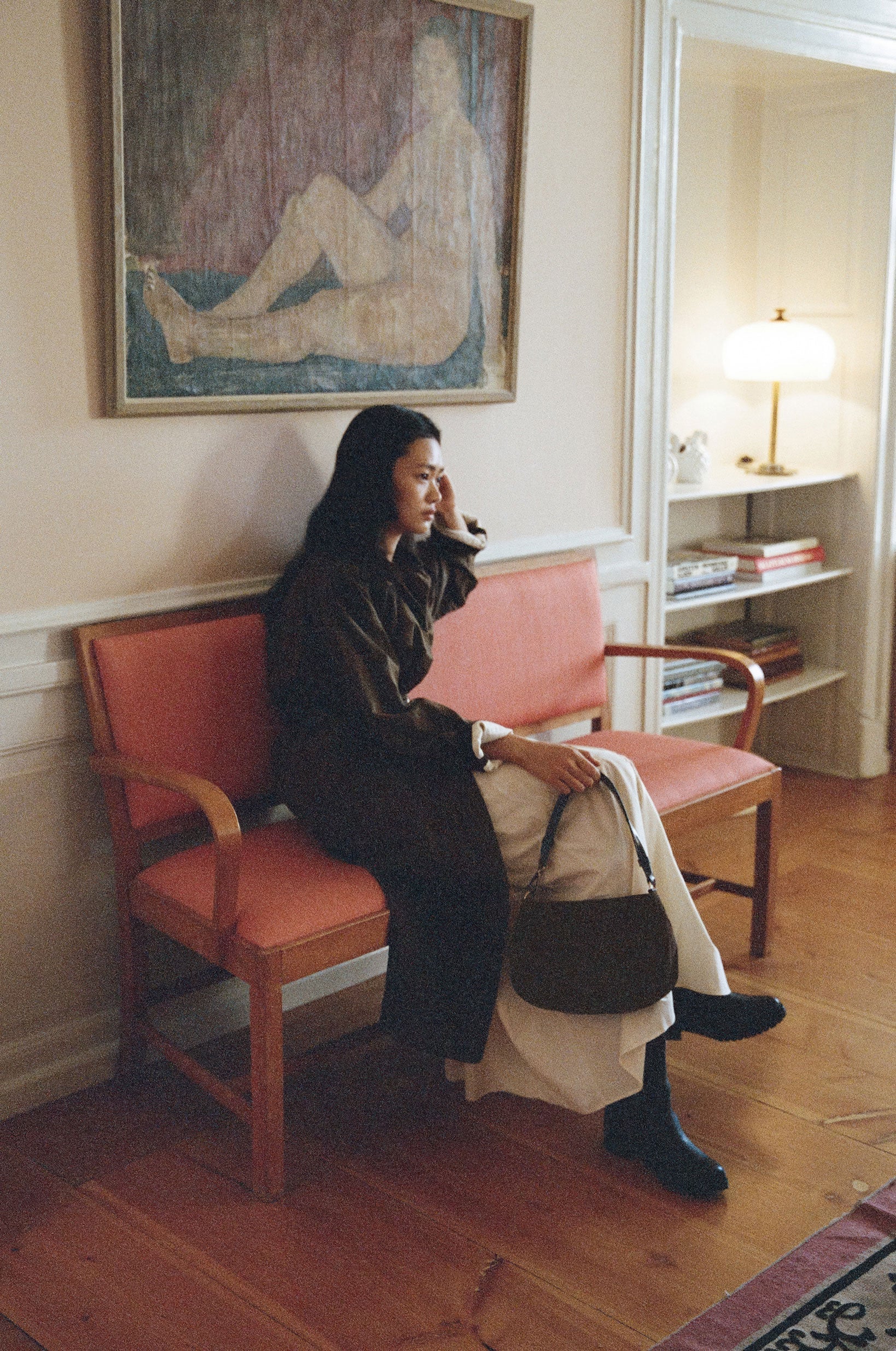 SAC NACELLE MINI introduces a compact size with refined proportions while retaining the balanced design of the original NACELLE Bag. Its streamlined silhouette makes it an ideal everyday shoulder bag. Crafted from soft cowhide leather, it naturally adapts to its contents, and the strap is shaped for a comfortable fit. Signature NACELLE details—seam accents and buckle hardware—add a distinctive touch, making the Mini versatile across styles and seasons.
