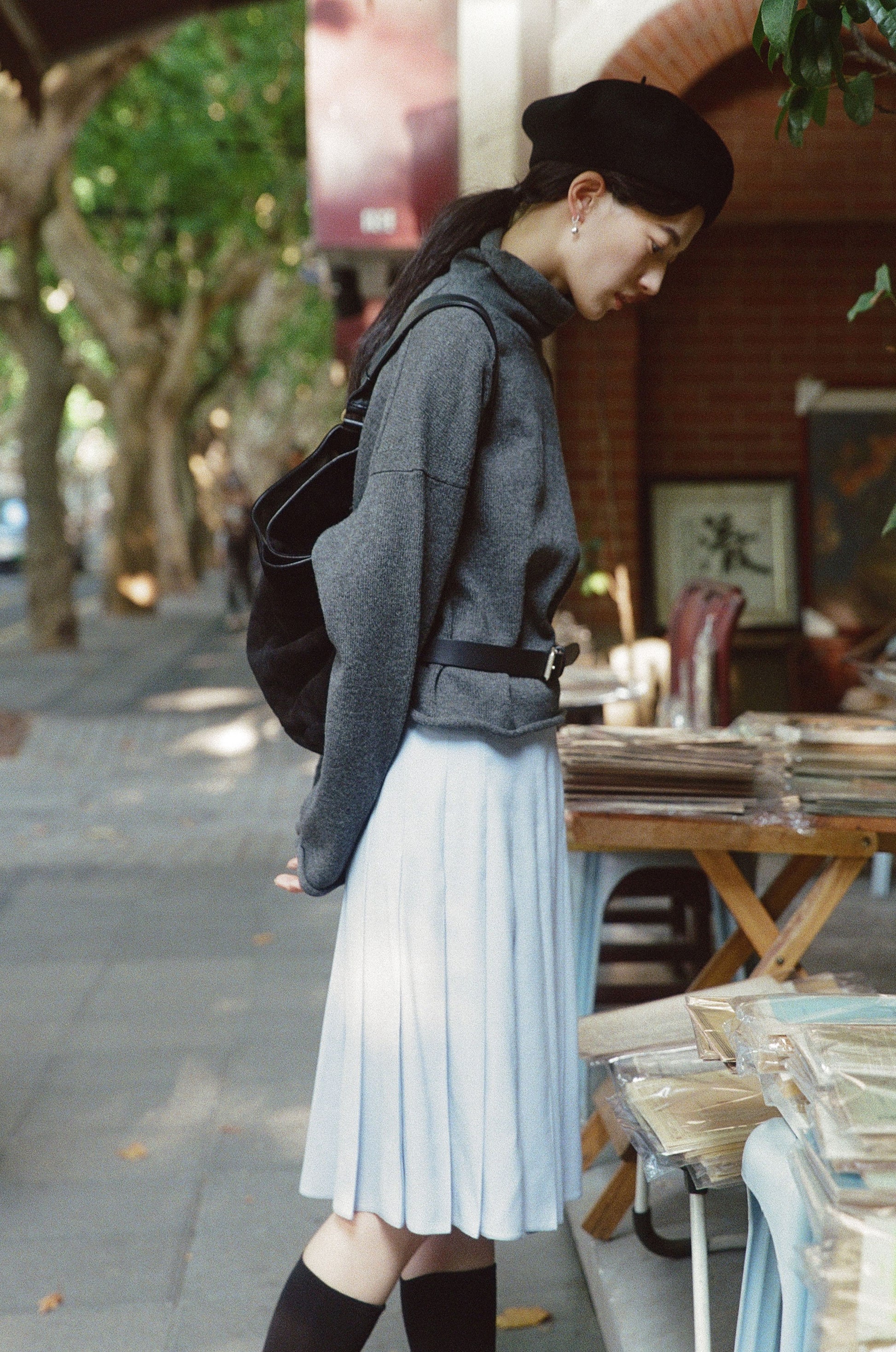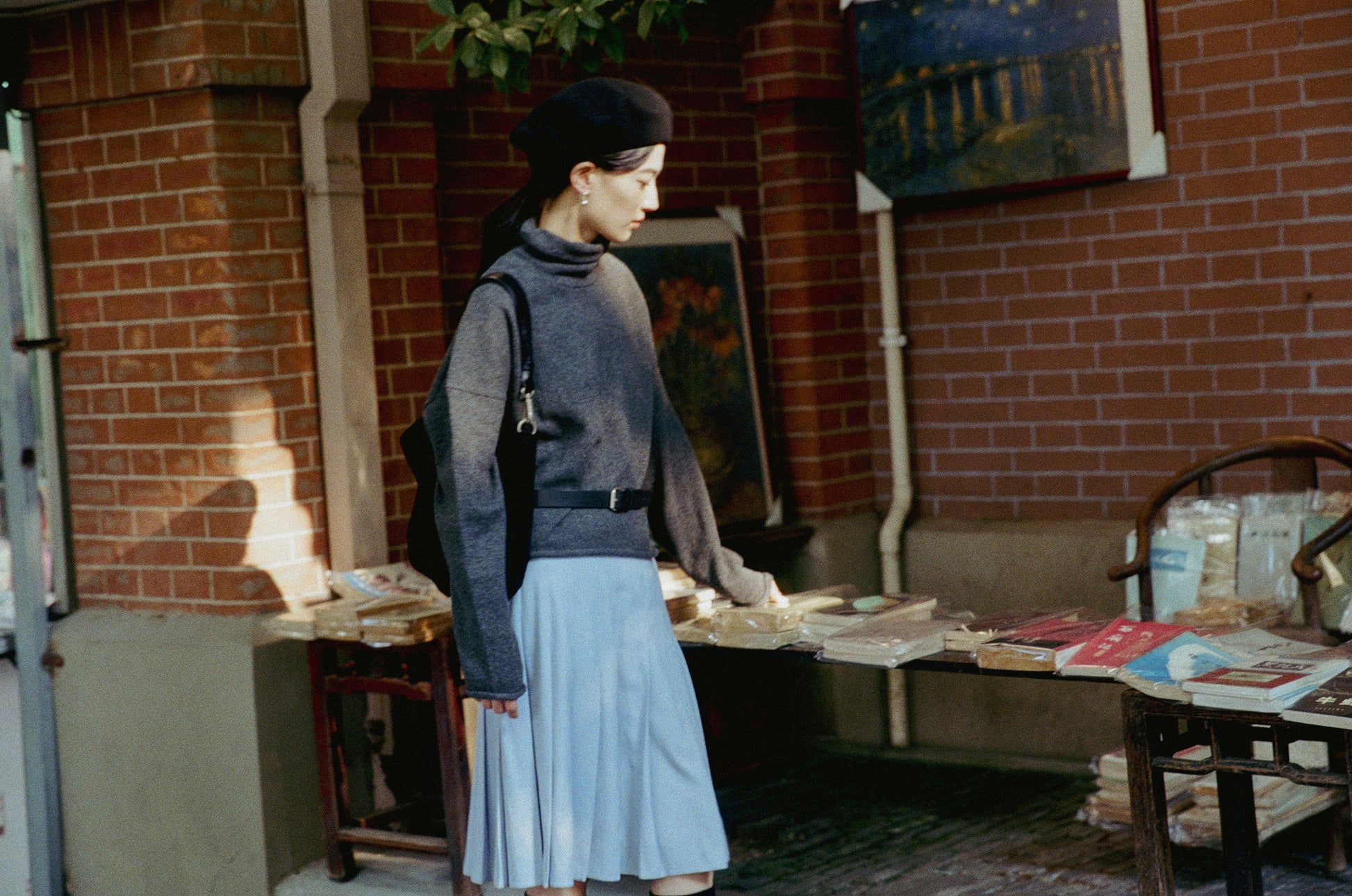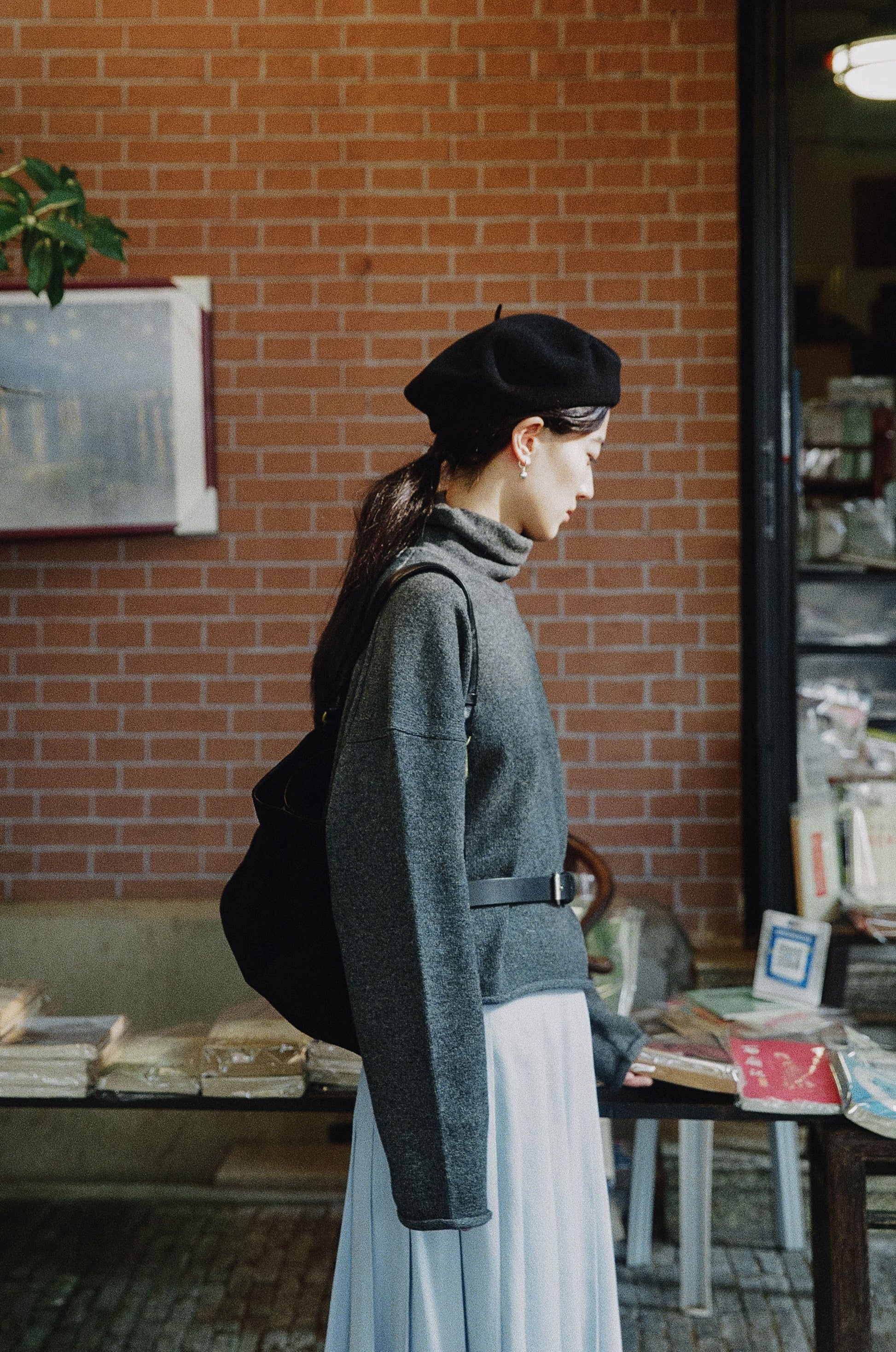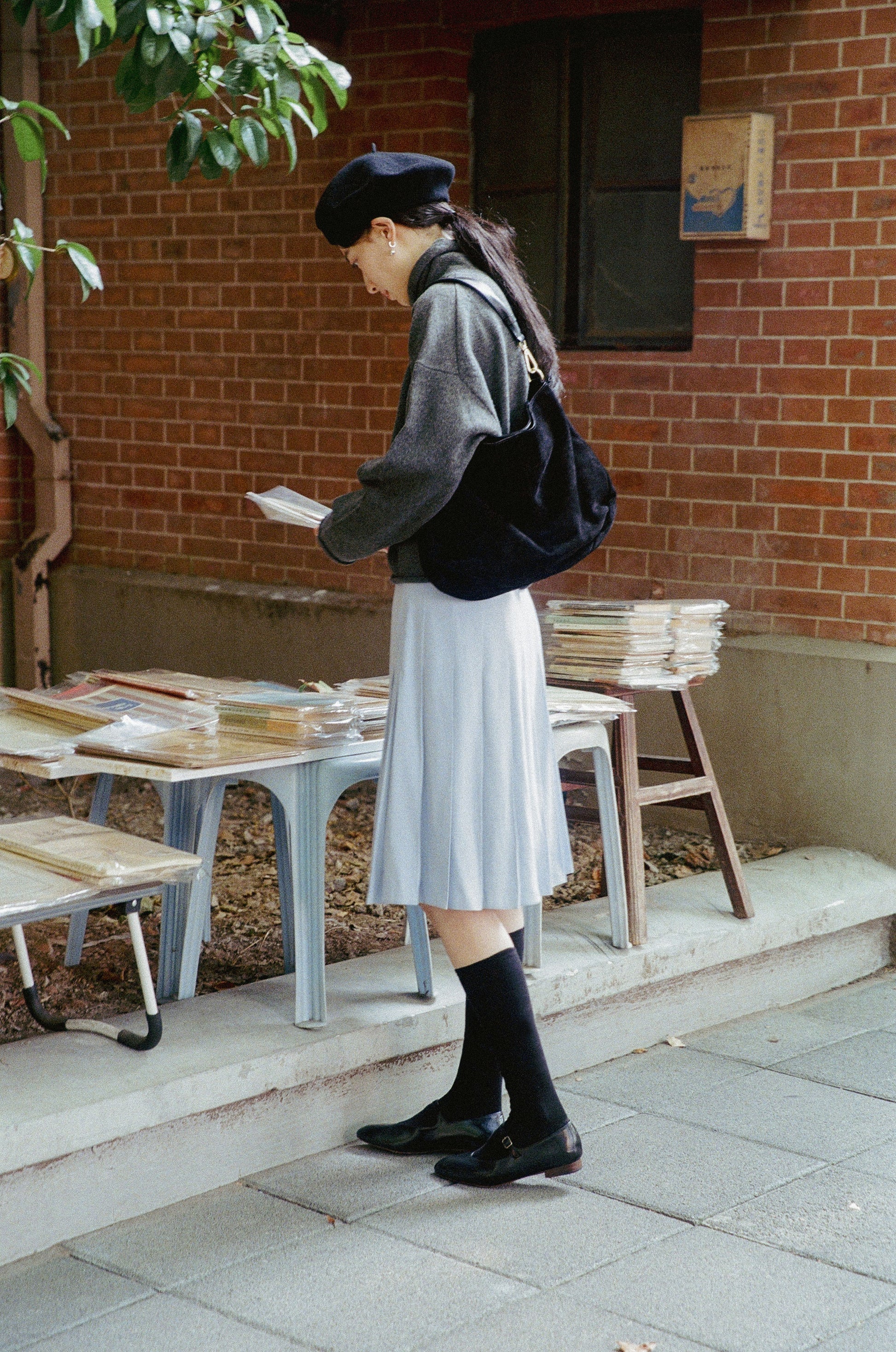 The NACELLE bag, inspired by the French word 'Nacelle' meaning small ship, is a hobo bag made of soft and flexible suede leather. The two-tone goat suede is beautifully soft, molding naturally to the shape of the items it carries. The double-layered strap provides a comfortable fit. At one end of the strap, a ring decoration with a engraved logo is used. The interior is divided into two compartments, and a zipper is attached to the center panel for storage. The nacelle bag, with its simple shape accented by buckle decorations and incisions, is lightweight and complements any outfit in any season.