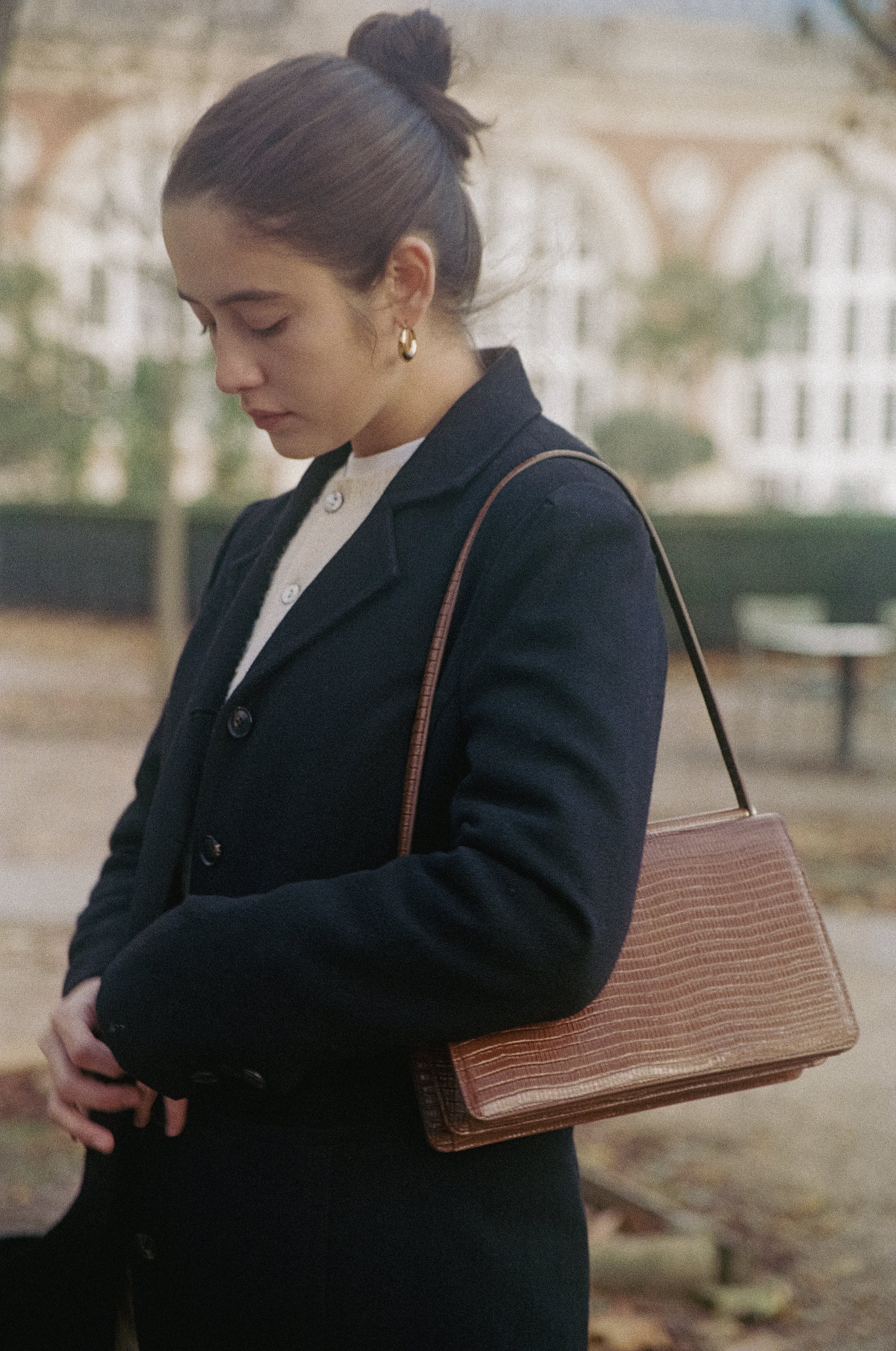 The PAUMELLE Bag by TOUT Y EST features a sleek square design, a signature style known for its single strap connecting to the iconic brass bar. This versatile bag can also be worn on the shoulder and the front and back flaps enhance the functionality, providing storage on both sides. Crafted from oil-finished leather with a subtle sheen, the PAUMELLE Bag offers a neat and classic look.