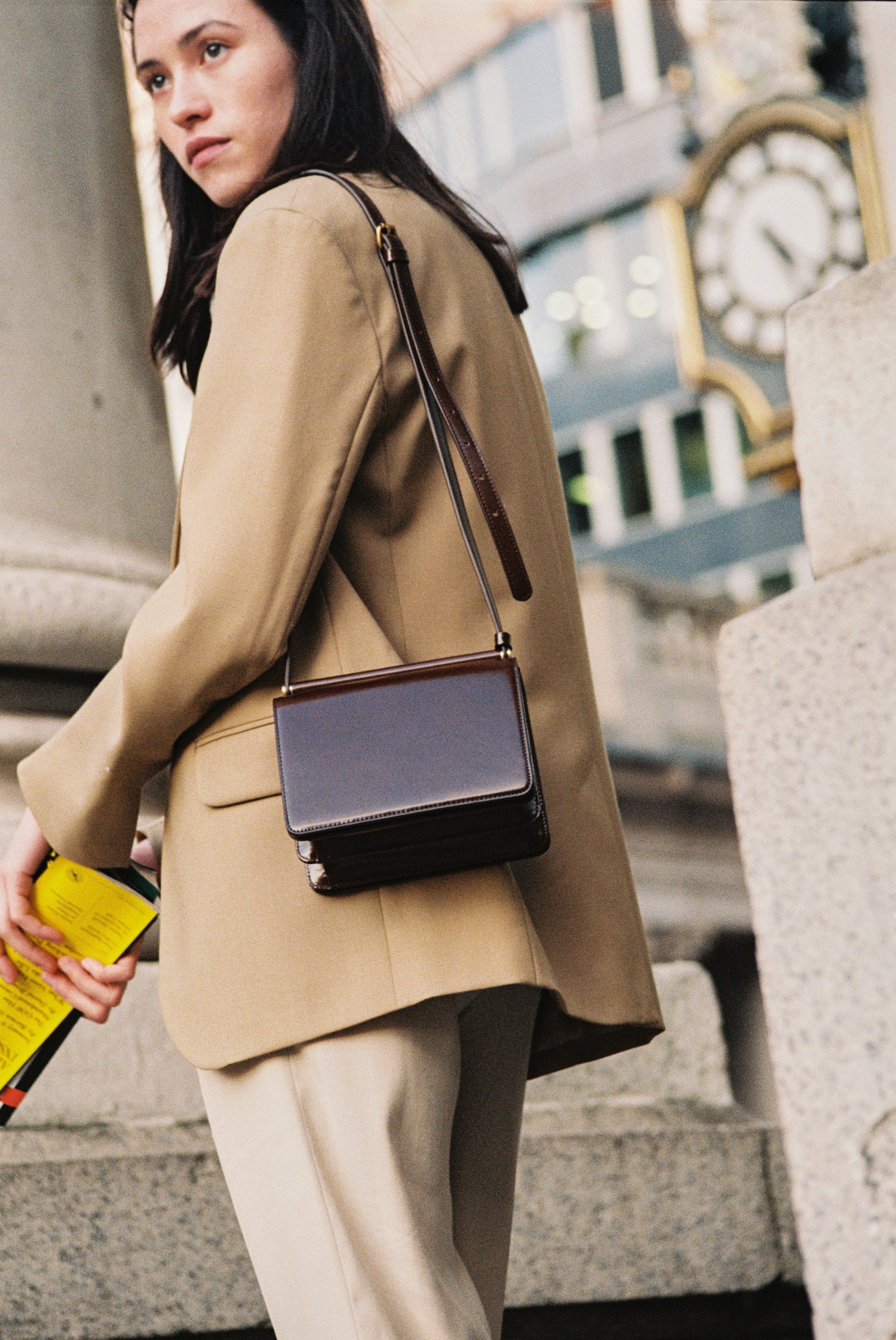 The PAUMELLE MINI Bag, a neatly shaped square from TOUT Y EST's signature collection, features a single strap seamlessly connecting the simple body to the iconic center bar decoration. Wear it over the shoulder or crossbody, and enjoy versatile storage with double flaps. Crafted from oil-finished leather with a subtle sheen, the PAUMELLE MINI Bag offers a neat and classic look.