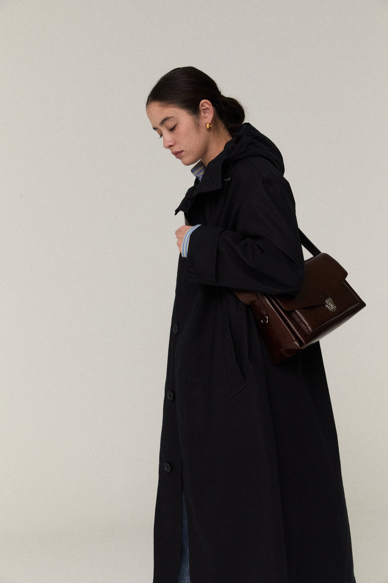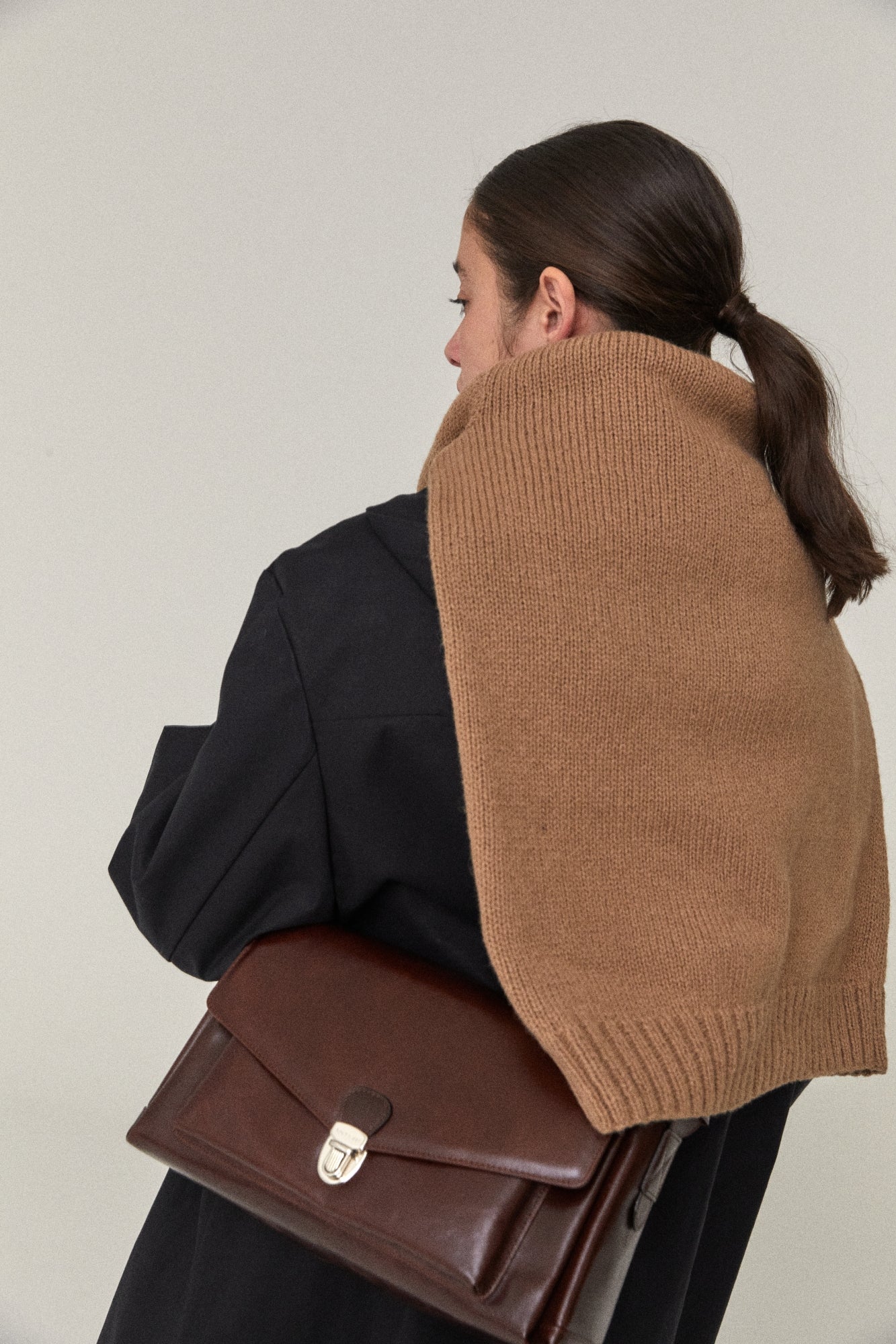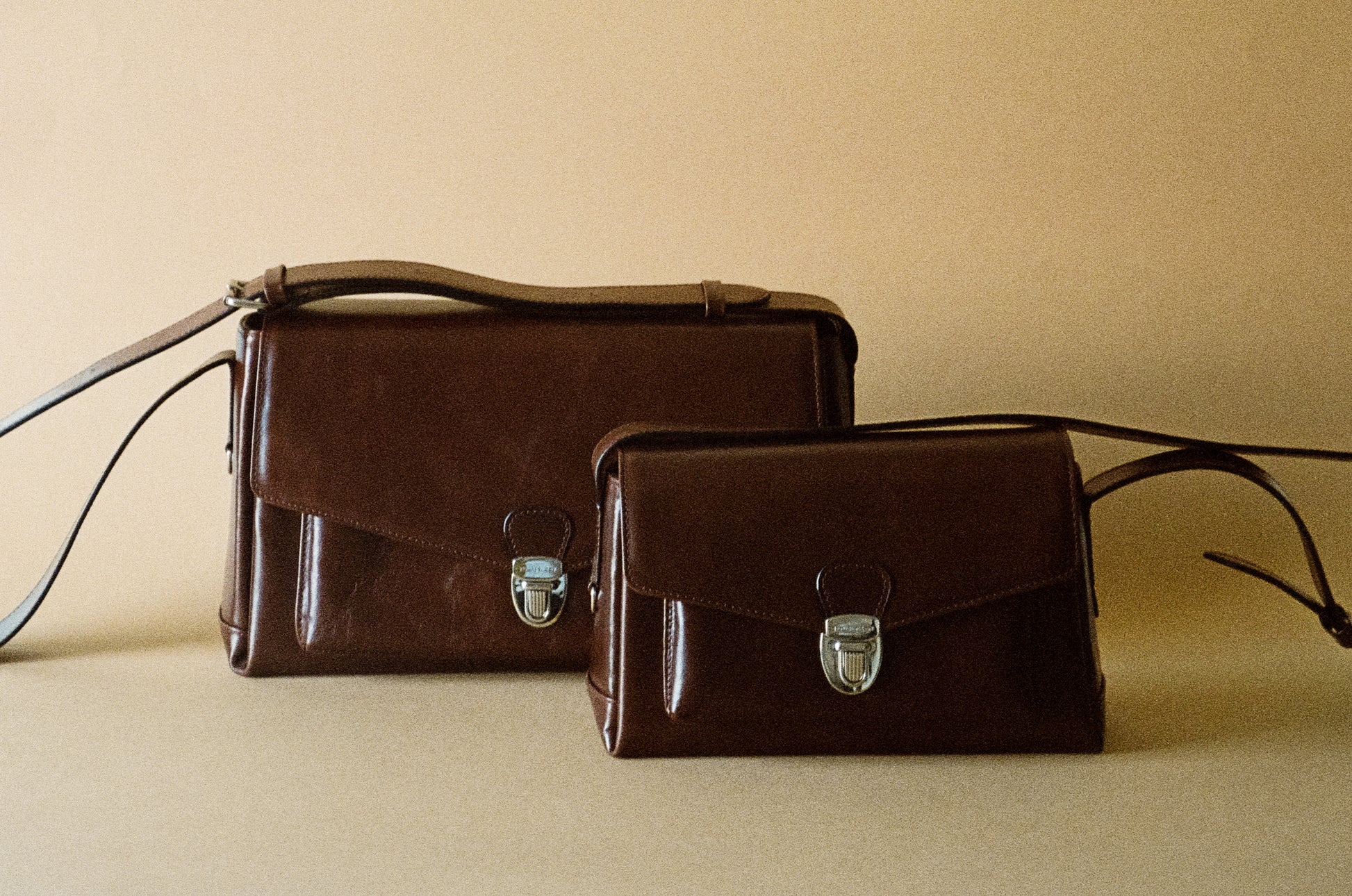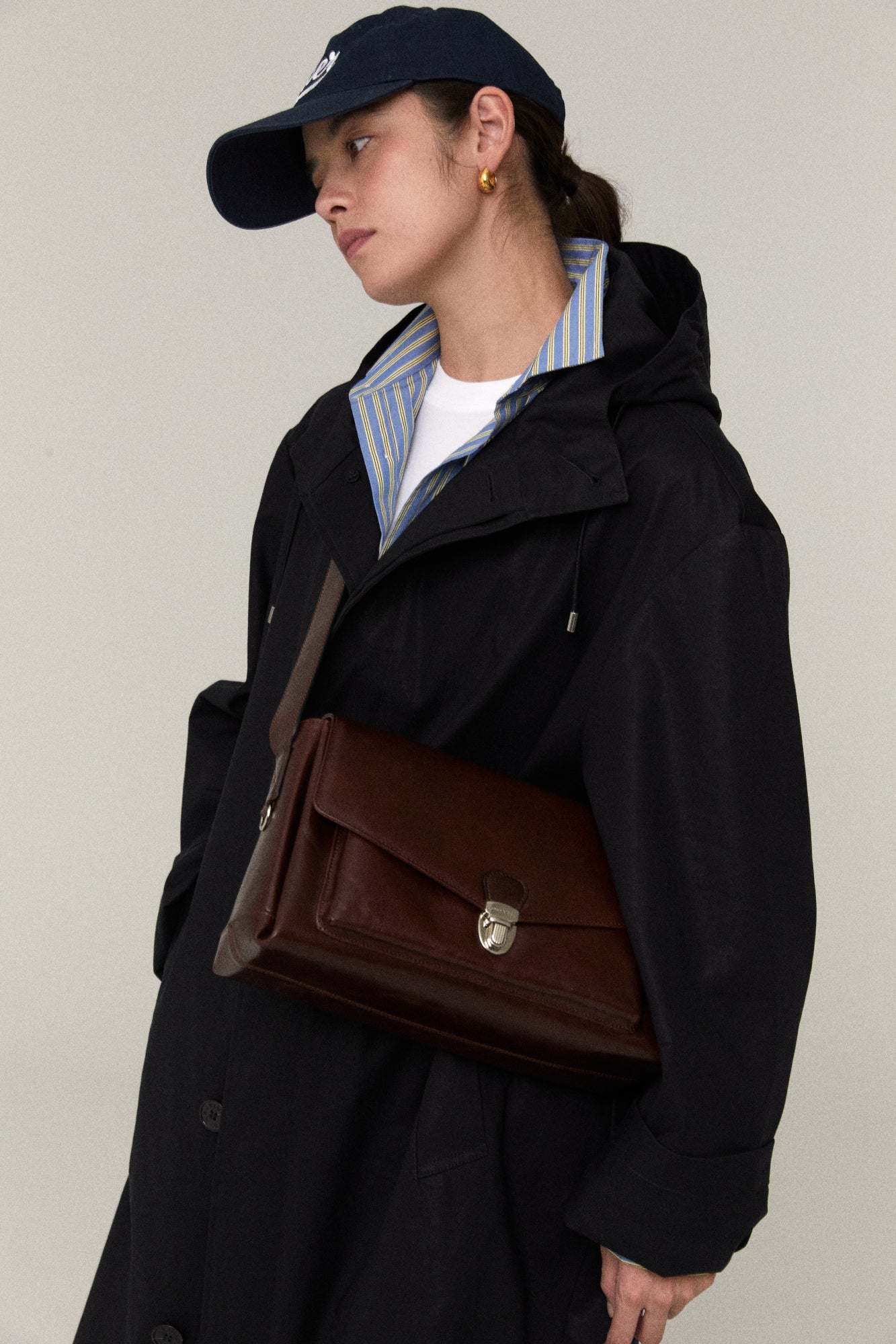 The VOLET bag has a casual trapezoidal shape adorned with TOUT Y EST's signature lock decorations, creating a timeless appeal. Crafted from oil-finished leather with a subtle sheen, the material gains a soft feel through a tumble washing process, displaying natural wrinkles. The two-tone color ages beautifully with use. With a convenient front outside pocket for frequently used items and a widening structure towards the bottom, the VOLET bag offers excellent storage capacity. The freely adjustable strap ensures versatile styling, allowing it to effortlessly complement any outfit, whether worn over the shoulder or crossbody.