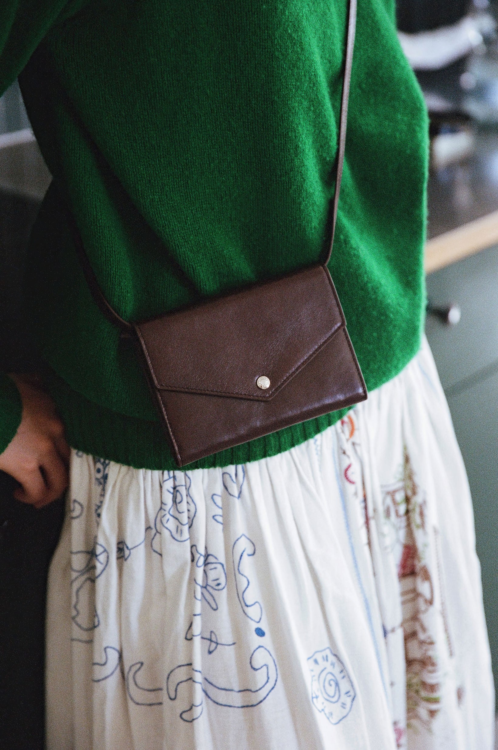 A cross wallet designed to add convenience to your travels. It keeps frequently used items such as your passport, credit cards, and bills organized in one place, with a front flap structure that makes opening and closing easy. Inside, a zip pocket and divided compartments allow you to neatly separate your essentials. Worn lightly as a crossbody, it provides quick access to your passport and cards, and when not in frequent use, the strap can be detached to store it in your bag like a regular wallet. The subtly glossy lambskin leather has natural wrinkles and a soft touch, and it develops depth and character over time, enhancing its unique texture.