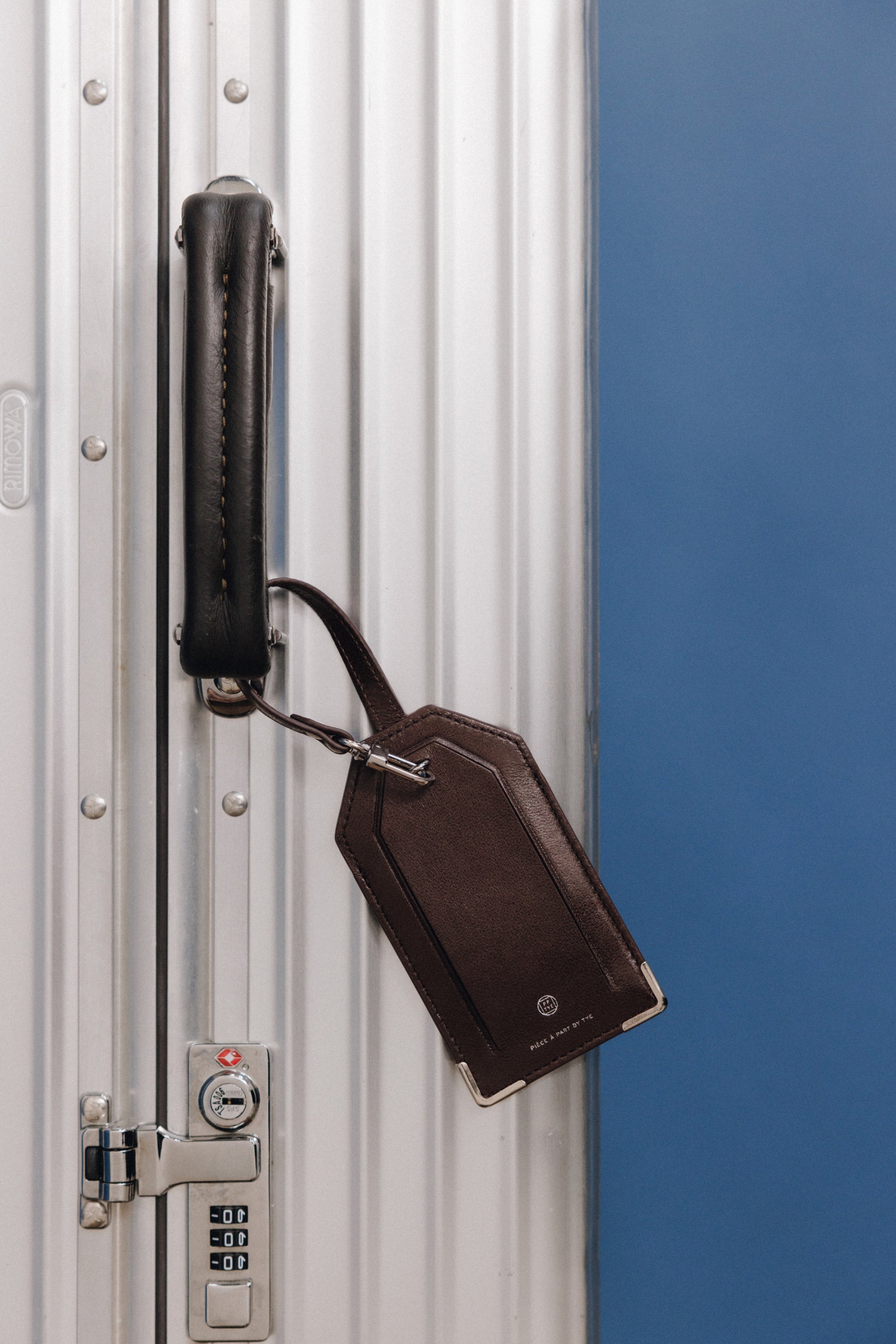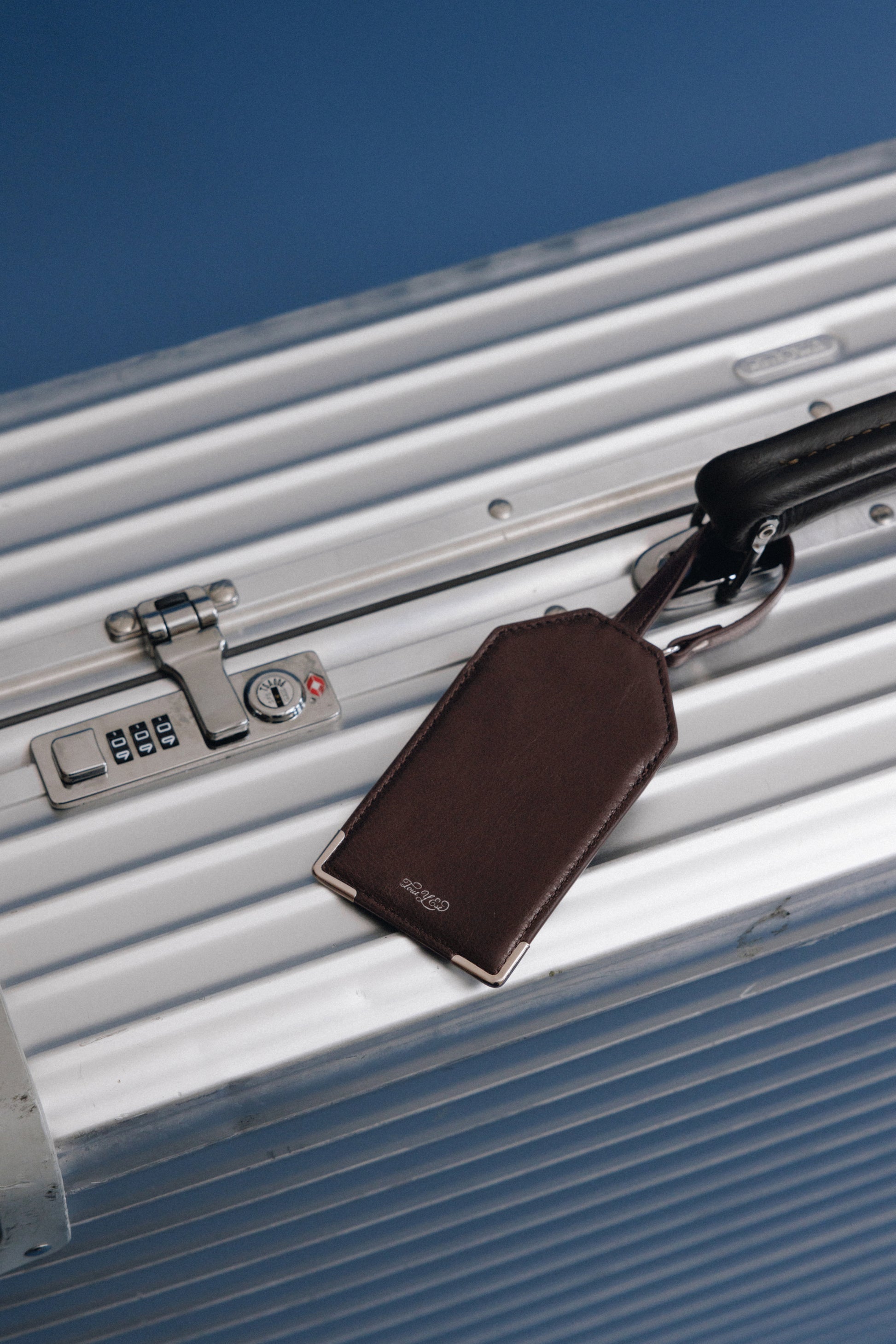 VOYAGE ÉTIQUETTE adds a special touch to your luggage. The exterior is made of soft lambskin with a smooth feel, while the interior is finished with a friction-free material, allowing name cards to be replaced easily. The flexible leather strap and swivel hook enable easy attachment and removal regardless of suitcase size. Metal hardware applied to the corners helps reduce wear that may occur during travel. The logos on the front and back are finished with silver foil, naturally complementing the metal hardware. The lambskin, with its subtle sheen, features natural wrinkles and a soft texture, developing deeper character and a unique patina over time with use.